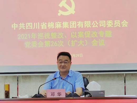 7月29日,四川省棉麻集團有限公司黨委書記、董事長鄧華主持召開巡視整改、以案促改專題黨委會。會議專題聽取了巡視整改、以案促改工作推進情況匯報,并對下一步整改工作進行安排部署。